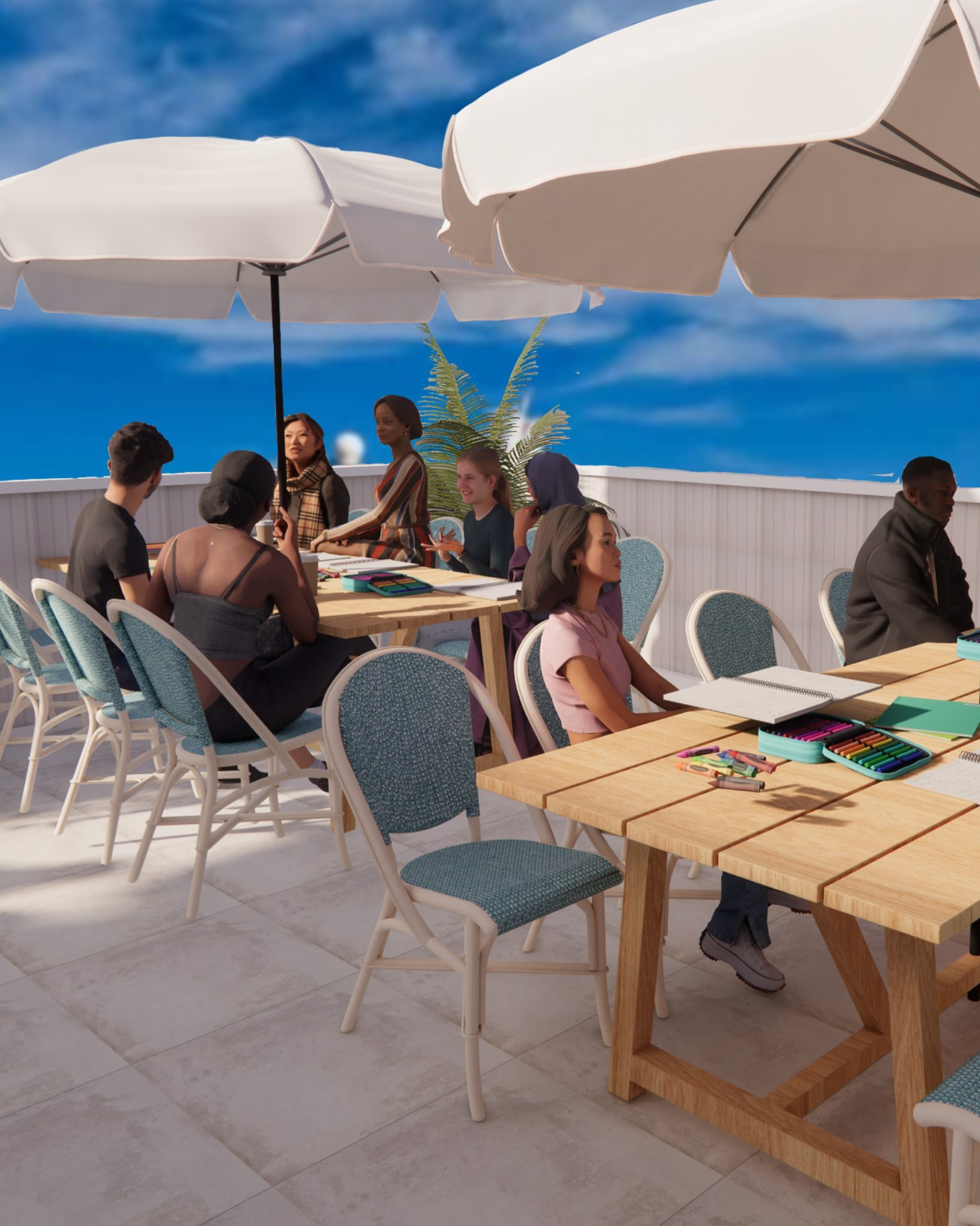 Berkeley’s Cafe is split across Decks 2 and 3. Deck 2 is the cafe’s primary space, offering a relaxing atmosphere in the historically inspired ambiance of a Parisian outdoor cafe. Deck 3 is an event space surrounding a ferry’s pilot tower, serving as a living history exhibit where people can walk through and peer at the helm. This terrace also serves as an intimate space for museum workshops and private events.