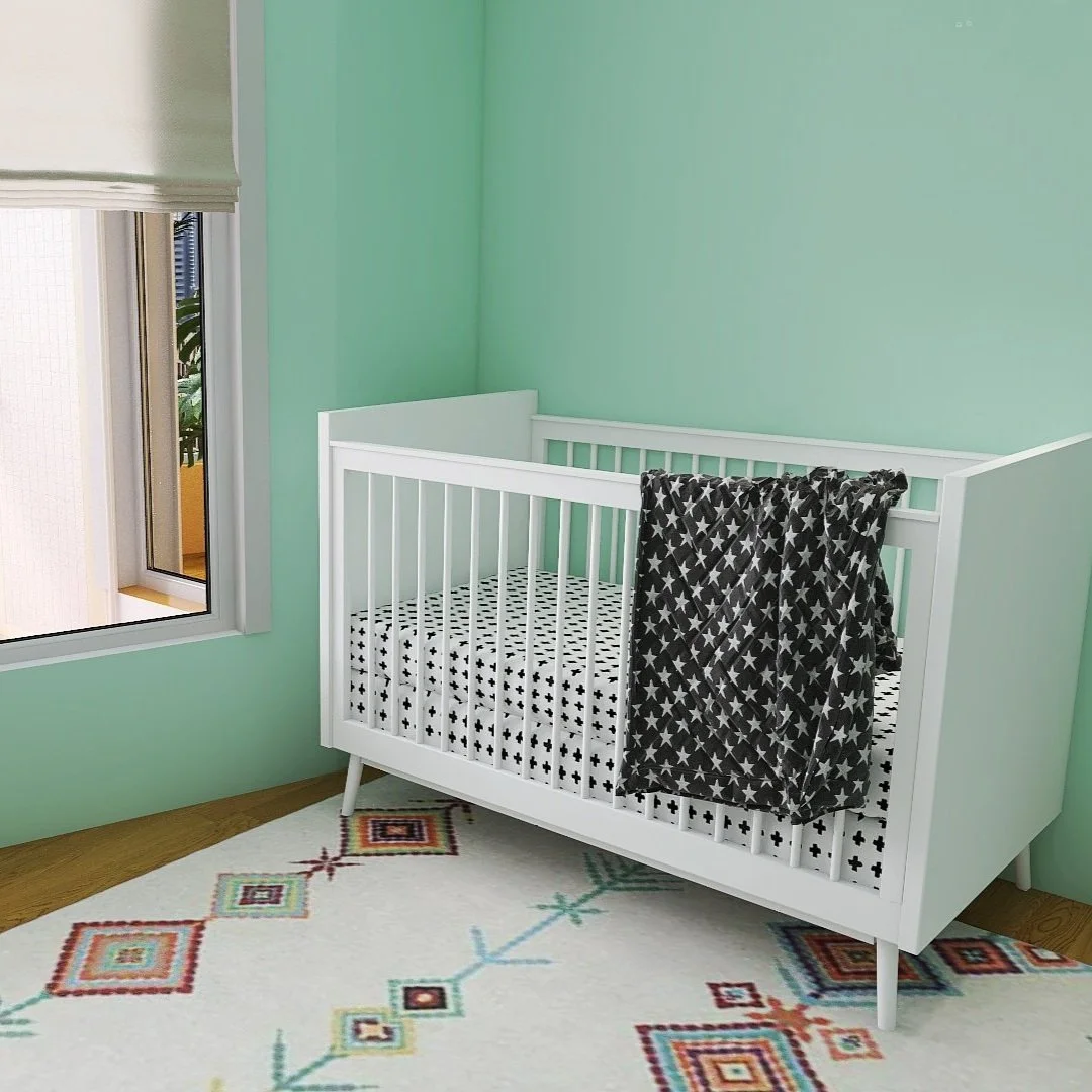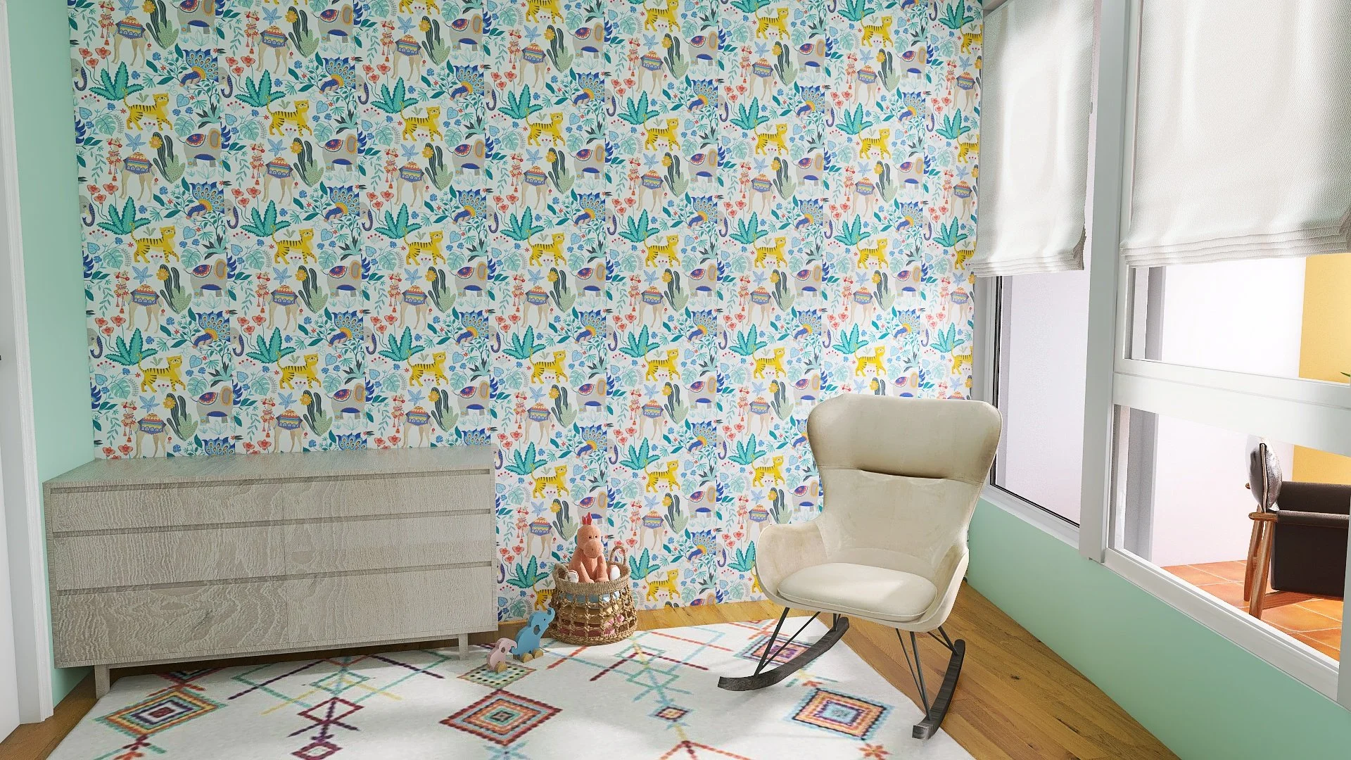 The botanical theme in their daughter's nursery goes jungle with a toned-down palette. Eric and Misty picked up the hand-woven carpet during their pre-kid adventures in Morocco.